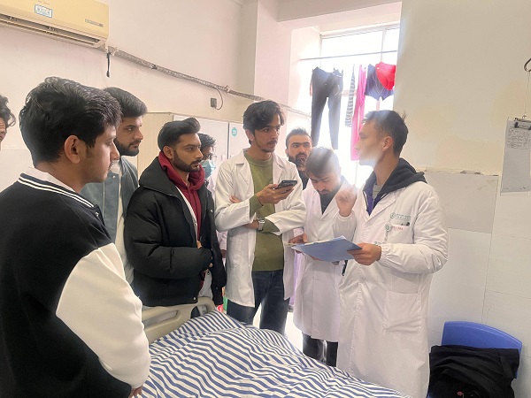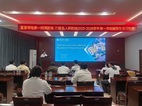 2025年12月11—12日,宜春学院第一附属医院 万载县人民医院迎来国际医学教育新实践,针对宜春学院国际教育学院留学生打造全英文见习带教。本次教学以全英文授课为主线,融合病例讨论与床旁查房等多元模式,为来自巴基斯坦的48名留学生搭建起从医学理论走向临床实践的重要平台。