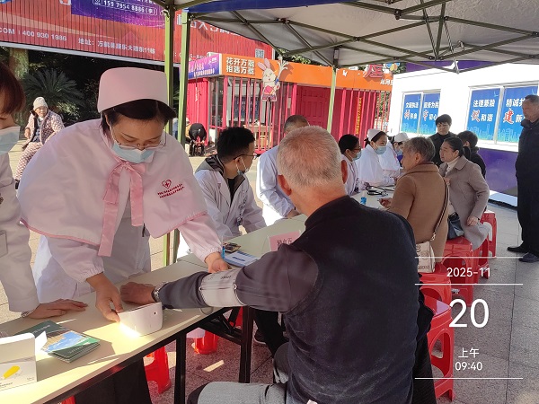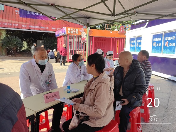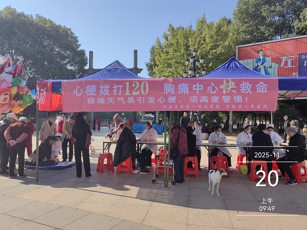 2025年11月20日,我国迎来第十二个“心梗救治日”,今年的主题聚焦“心梗拨打120,胸痛中心快救命,极端天气易引发心梗,须高度警惕”。为进一步普及急性心肌梗死救治理念,提升公众对心血管疾病的认知与防范意识,当日上午,宜春学院第一附属医院 万载县人民医院大心血管内科主任、学科带头人朱虹岷博士(江西省人民医院心内四科主治医师)带领我院心血管科专业团队,在龙河星城广场成功举办了一场主题鲜明、内容扎实的公益义诊活动。
