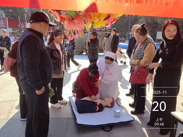广场中央的心肺复苏模拟人教学区备受关注,医护人员通过通俗讲解与标准示范,指导市民掌握按压深度5-6厘米、频率100-120次/分钟等核心操作要点,众多市民踊跃实操练习,直呼学会了“救命本领”。